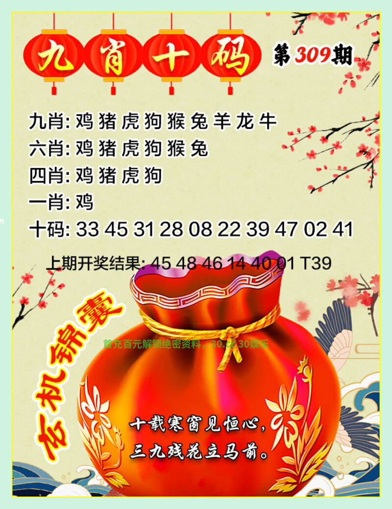 308期:九肖龙蛇虎鸡猪狗马鼠兔39中